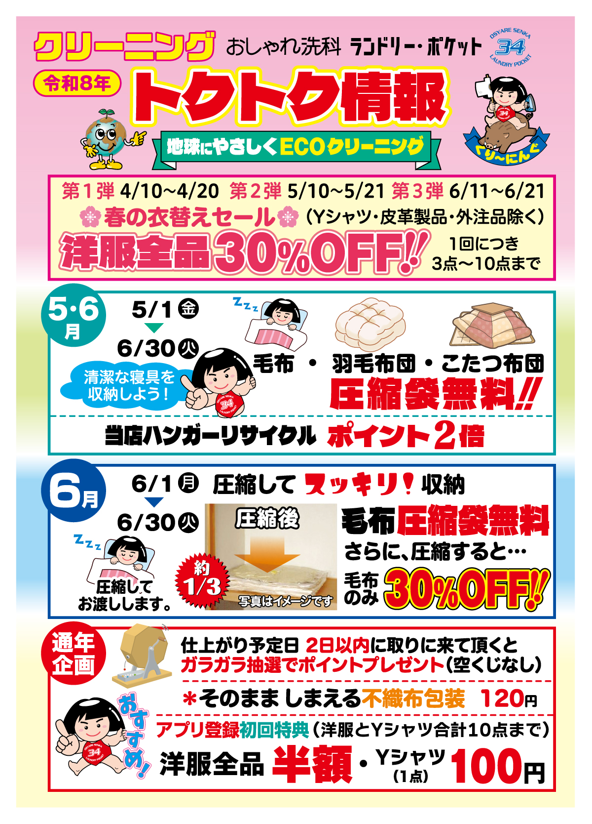 会員様限定!クリーニング トクトク情報!